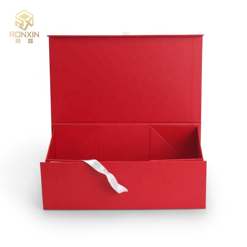 جعبه کادویی بسته مقوایی تاشو قرمز با روبان برای بسته هدیه