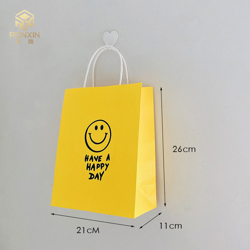 کیسه خرید کاغذی چاپ شده زرد روکش شده با مواد سازگار با محیط زیست برای بسته هدیه