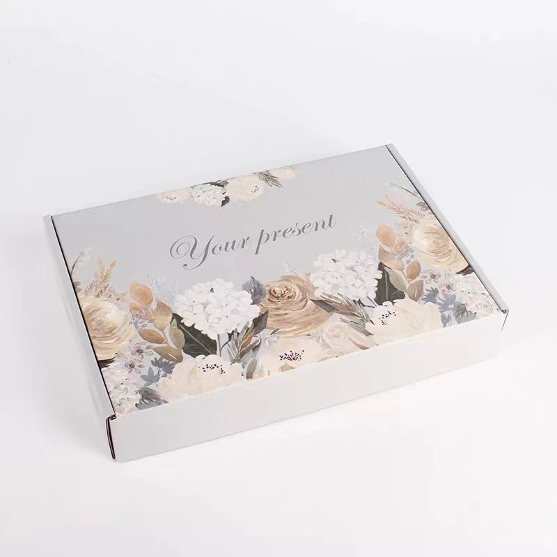 جعبه راه راه کاغذ E فلوت با گلطراحی لوگو با مهر زنی داغ برای بسته بندی هدیه