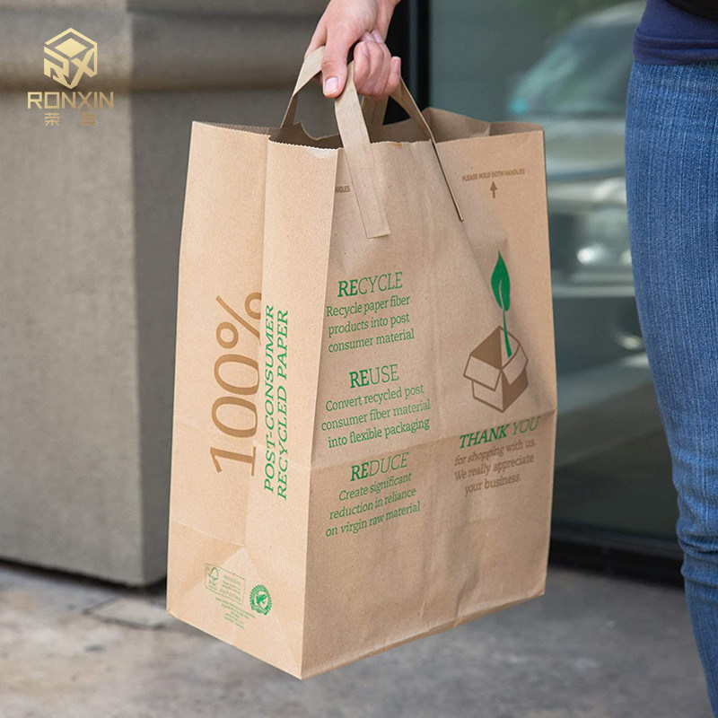 کیسه خرید کاغذ چاپی کاغذی با دسته سازگار با محیط زیست برای بسته بندی خرید