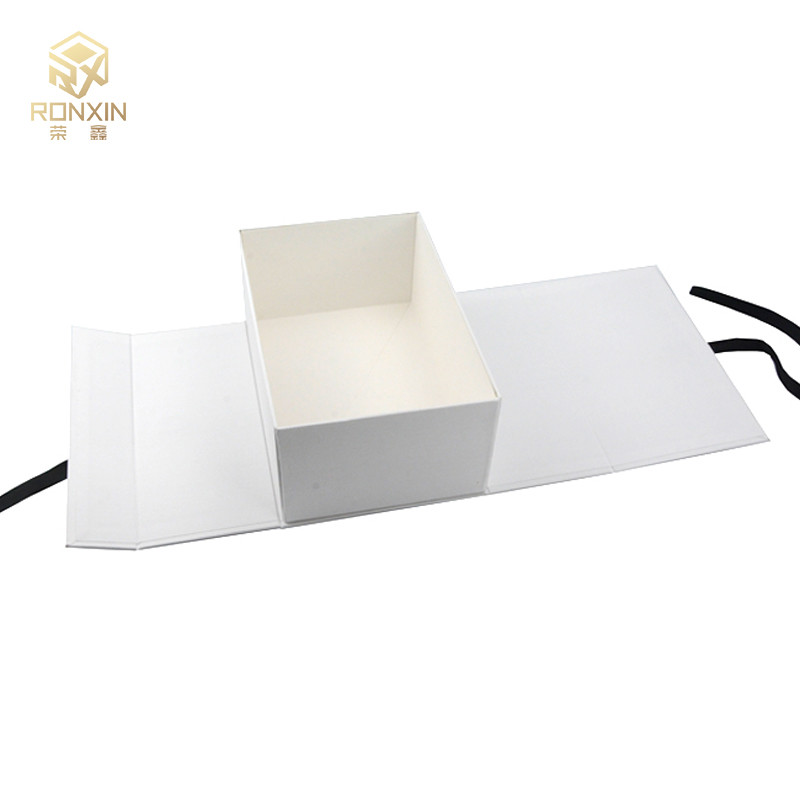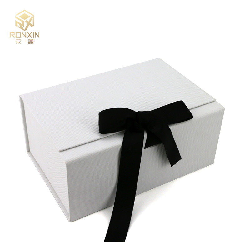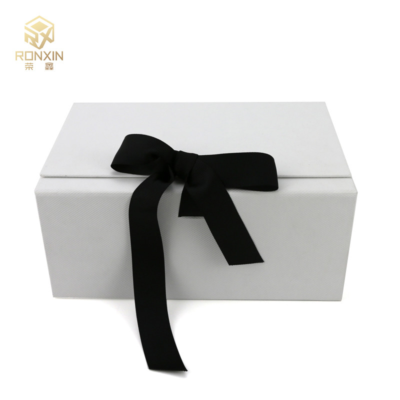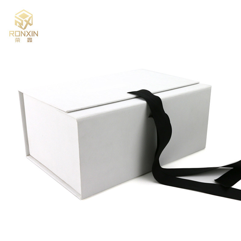 جعبه کادویی درب مغناطیسی مقوای سفید با لوگوی طرح روبان برای بسته بندی هدیه