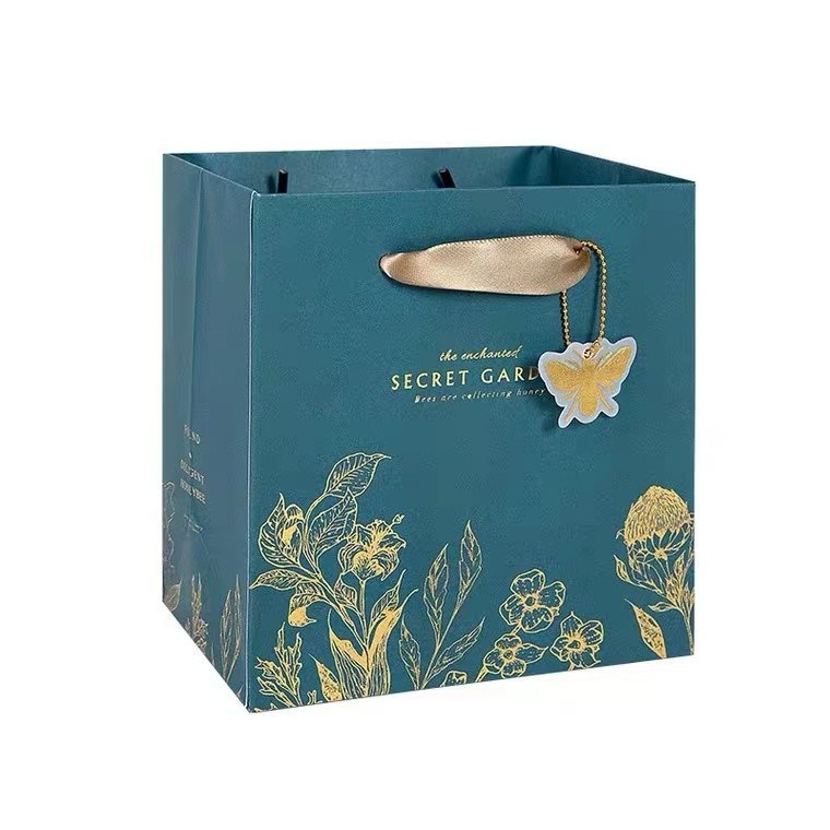 | مورد: | کیسه خرید کاغذی چاپ شده با کاغذ با پوشش سبز عمیق با دسته روبان برای بسته بندی هدیه |