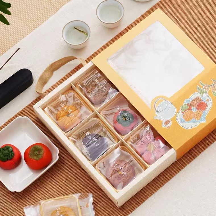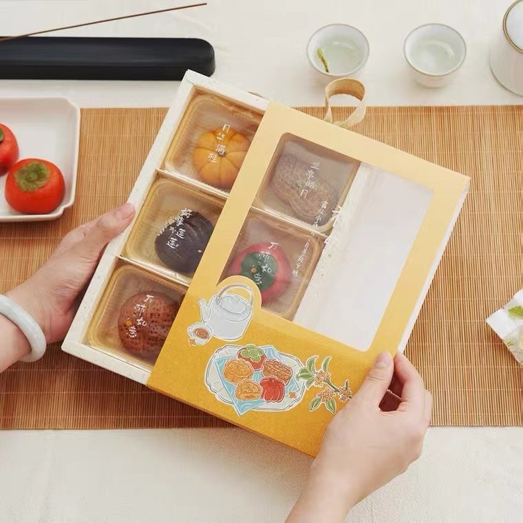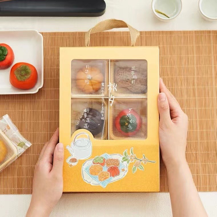 جعبه های هدیه تاشو کاغذی با روکش زرد با دسته روبانی درج کاغذ برای بسته بندی مواد غذایی